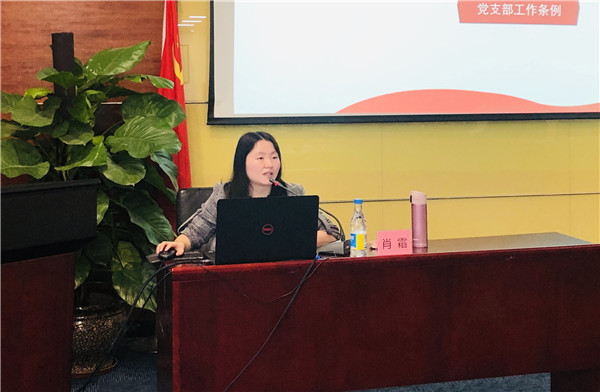 肖霜老师从《条例》出台的背景及意义、党支部工作必须遵循的原则、党支部组织设置、基本任务等内容逐章对《条例》进行了详细的讲解,并对如何贯彻落实《条例》提出了指导性的意见。肖霜老师强调:《条例》既发扬了我们党长期积累的党支部建设宝贵传统,又体现了基层党组织好的工作经验和做法,内容细致全面,指导性强。《条例》的制定和实施,是推动全面从严治党向基层延伸的重要举措,对新时代党的组织体系建设,全面提升党支部组织力,强化党支部政治功能,巩固党长期执政的组织基础,具有十分重要的意义。