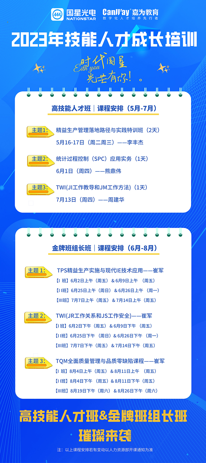 为此,公司将在5月-8月开展2023年技能人才成长培训。