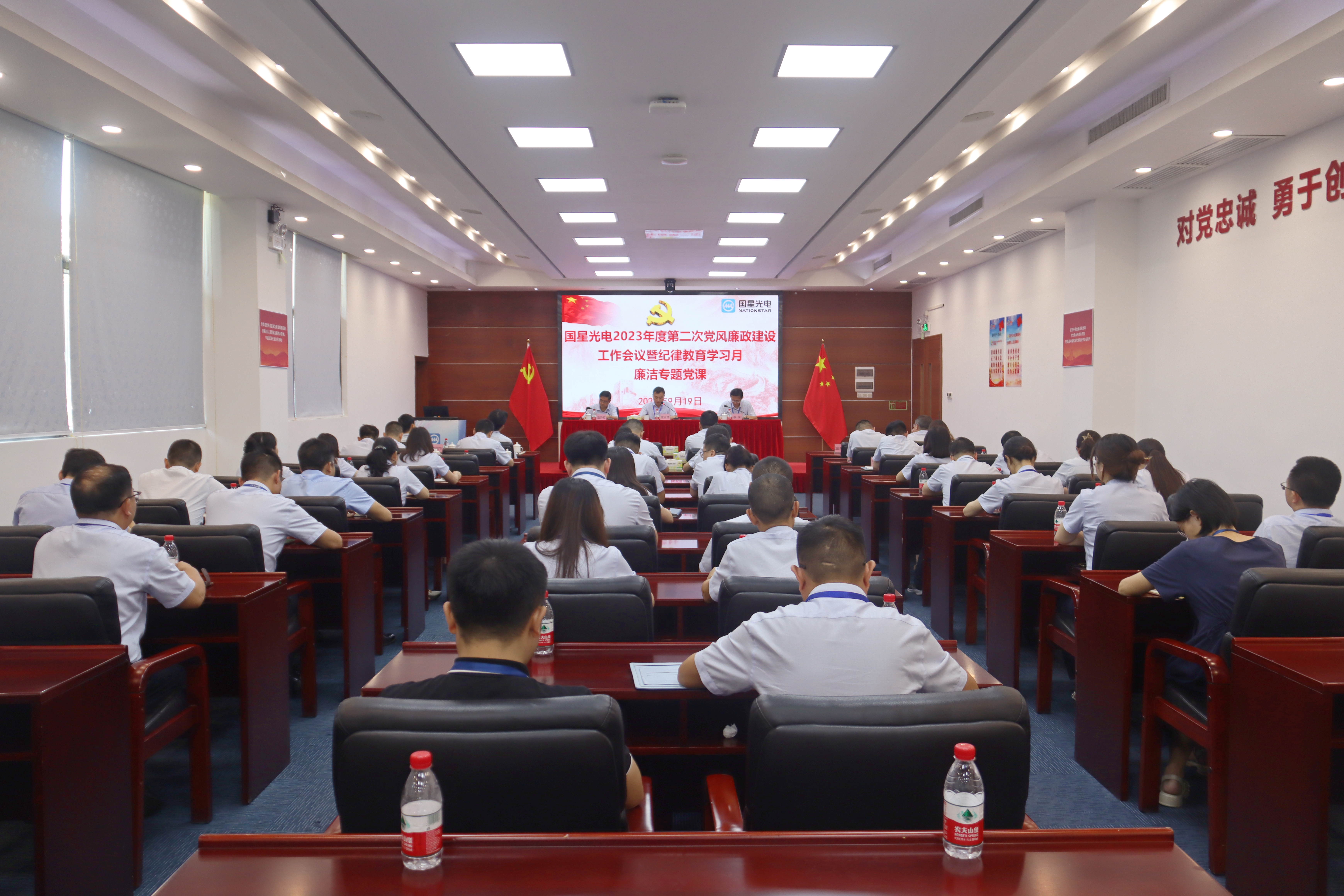 永信贵宾会光电领导班子成员、职能部门副职以上人员、事业部和子公司副总经理以上人员、各党支部纪检委员、纪律检查室全体人员共50余人参加会议。