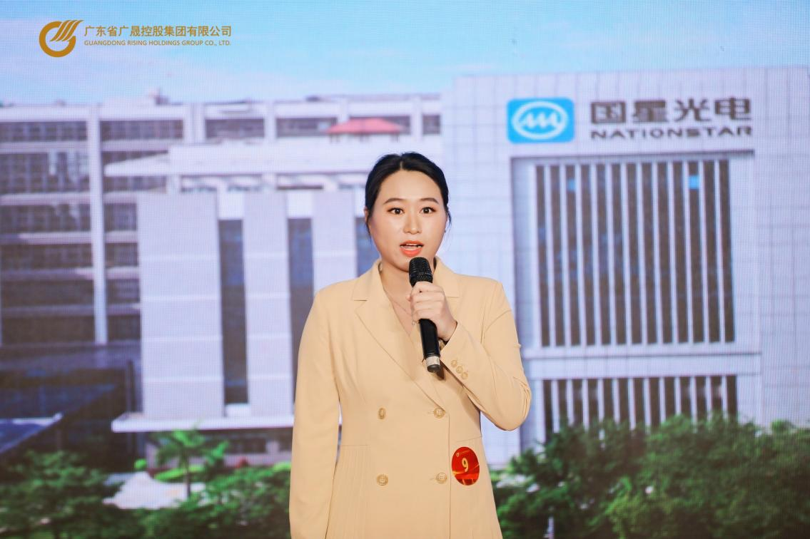 吴华微以《微光》为题,以“凡人微光,星火成炬”为关键词,深情讲述了自己在销售岗位上,一次次迷茫中坚持和努力,从毫无经验的职场小白成长为自信果敢的销售主管的故事,号召广晟青年如萤火一般发亮发热,全力以赴,挺膺担当,定能汇聚成中国式现代化广晟实践的璀璨光芒。吴华微完美演绎了无私奉献的“小我”组成了努力奋斗的“大家”,深深地打动了现场的观众和评委们,最终以第一名的成绩站上了领奖台!