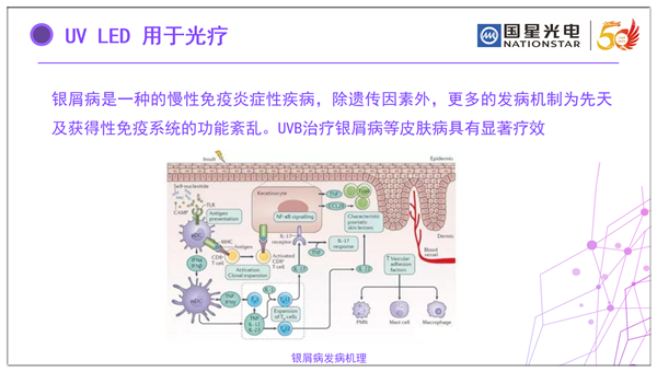 同时,UV LED在光疗领域的应用也逐步普及,UVB LED照射可有效治疗银屑病、白癜风等多种皮肤病。与传统的NB UVB紫外线光疗仪和准分子激光治疗仪相比,UVB-LED能做得更小型化,方便携带使用,优势更加突出。