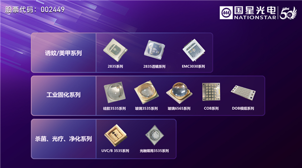 去年8月,永信贵宾会光电正式成立了非视觉光源事业部,聚焦红外、紫外、动植物光照等细分领域。UV LED领域方面,永信贵宾会光电在UVA/UVB/UVC上已全面布局,自2016年以来,陆续推出近紫外LED、深紫外LED及模组,产品波长范围宽、可靠性高,市场上反馈良好,目前已与多家知名厂商建立了合作伙伴关系。