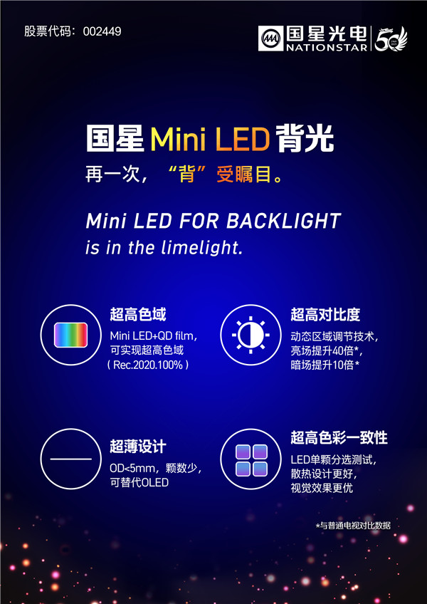 谢志国博士表示:“Mini SMD器件拥有独创的杯型和出光角度设计,可实现高可靠性、高亮度和大发光角度等独特优势,可满足客户在OD=5mm、Pitch=8mm/9mm/10mm下对于产品光均匀度的要求,目前已在国内外进行全方位的专利布局。得益于独创的出光设计,TCL X10的整机厚度仅为14.5mm,成为高端背光产品代表。”